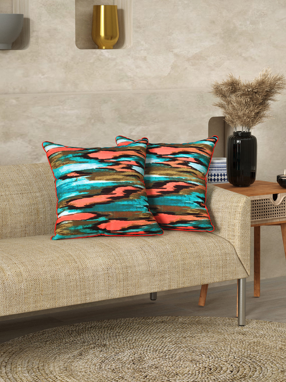 They come in sets of two to go well on all your cushions on a sofa or diwan set, or you can use them on different bedroom cushions too.